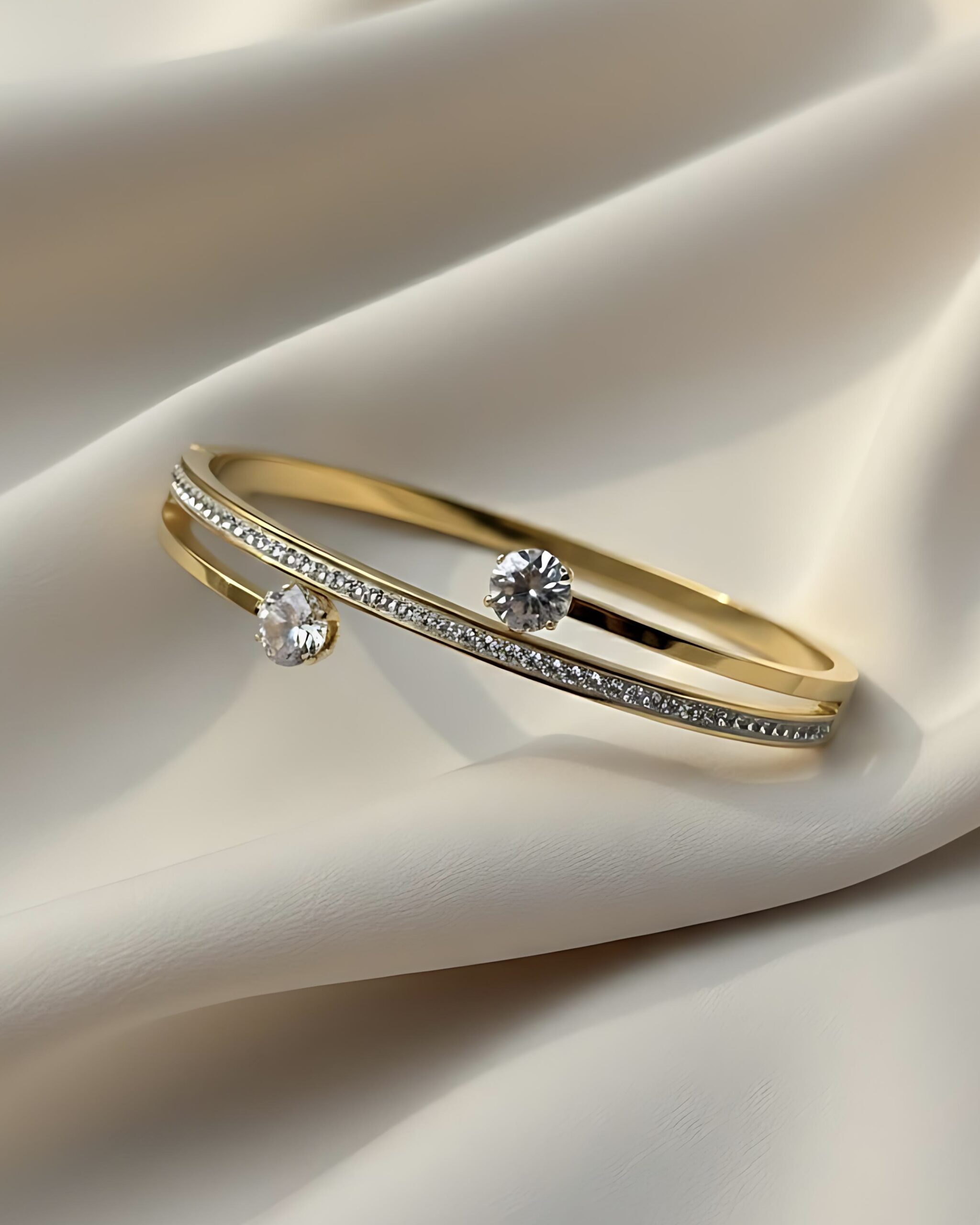 Why You’ll Love It: This bangle perfectly captures the essence of the Quiet Luxury trend while still making a dramatic statement, fitting perfectly with the Minimalist Maximalism aesthetic of 2025. The Dual-Band construction and the brilliant Solitaire Crystals give this piece a unique, high-value, designer look. The Open Cuff shape is incredibly easy to put on and take off, and its adjustable nature ensures a perfect fit. This piece is an ideal Signature Accessory and a memorable Luxury Gift.