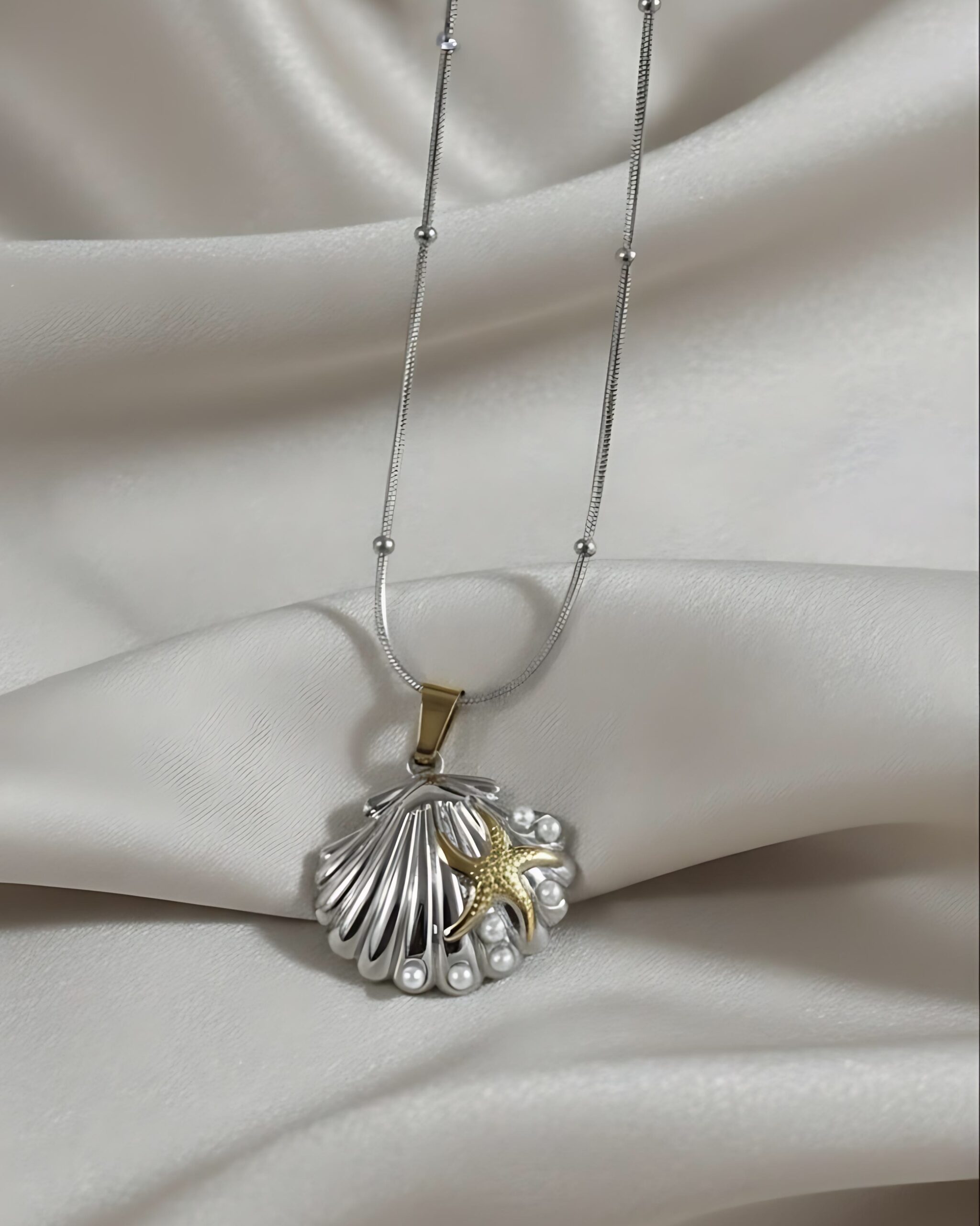 Silver Coastal Shell Necklace with Gold Starfish Charm – Oceanic Jewellery